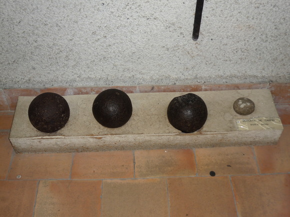 Das sind keine Boule-Kugeln! Die sehen zwar fast so aus, sind aber älter als Kugelspiele wie Petanque. Das sind nämlich Kanonenkugeln, oder besser gesagt, Wurfgeschosse für die Katapulte, die die katholischen Truppen rund um Minerve aufstellten. Zu Fuß war diese Festung ja nicht zu erzwingen. Also schossen die Eroberer sie mürbe.