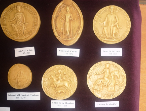 Die Münzen bilden die verschiedenen Leute ab, die in den Kriegen engagiert waren. Raymond, Comte de Toulouse, für die Okzitanier und Katharer, Simon de Montfort für die katholischen Kreuzritter und den französischen König.